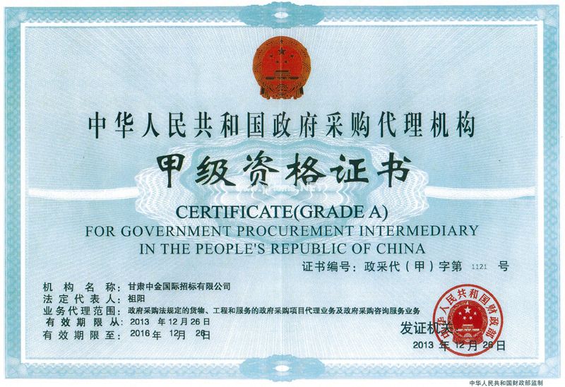 甘肅中金國際招標有限公司成立于2011年11月,注冊資金500萬元,于2012年5月取得由省財政廳頒發的政府采購代理機構乙級資質(政采代【乙】字第甘022號),并于2013年12月取得由中華人民共和國財政部頒發的政府采購代理機構甲級資質(政采代【甲】字第1121號),在2016年1月取得由甘肅省住房和城鄉建設廳頒發的工程招標代理機構乙級資質(F262005074);2015年4月取得機電產品國際招標代理資質,僅在短短幾年內成為本行業發展速度最快的公司之一。 甘肅中金國際招標有限公司由海外留學回國學生擔任核心領導,公司下設商務部、工程部、財務部及辦公室等業務部門,目前公司在職員工50余人,其中本科以上學歷占50%以上,擁有中高級國家技術職稱人員為19人。公司地處蘭州市繁華地段,交通非常便捷;辦公環境優良,擁有寬敞明亮的開標大廳、評標會議室和會客室;計算機網絡管理辦公系統,實現了全方位的辦公自動化;同時,公司擁有一支具有豐富招標經驗的專業團隊,憑借過硬的專業知識、積極主動的服務意識、科學嚴謹的工作作風服務于省內各行政機關、企事業單位,在招標服務過程中,我們兢兢業業,踏實工作,嚴格遵守國家規定和程序進行相關招標服務,受到了眾多業主及投標人的一致好評。 中金公司將以高效率、高質量及好服務為各業主單位和投標人提供優質和專業的招標服務。